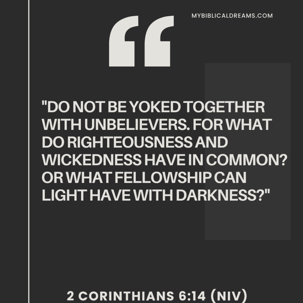Paul warns against being “unequally yoked” with unbelievers, particularly in intimate partnerships or alliances. This principle is not a call for isolation but a caution against forming bonds that compromise one’s faith or hinder spiritual growth.